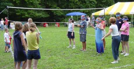 One of many games this year was the "Parent-calling contest." Parents were blindfolded and lined up across from their kids. The kids were then "shuffled." The winner was the parent who stumbled into the arms of his/her child the fastest while the children remained stationary calling out directions to their blindfolded parents.