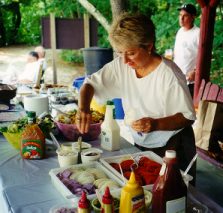 Photo 1 - Board member Joan Myers makes sure the food table is well stocked.