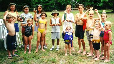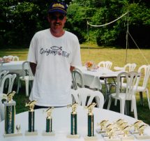 Despite 90-plus degree heat, approximately 70 people attended the Annual Picnic on Sunday, August 1, 1999. The highlight of the picnic was the awarding of trophies to the 14 entrants of the Second Annual Youth Fishing Tourney. Click here for a photo of the trophy winners. And here's a close-up of the first place trophy. The top awards were: