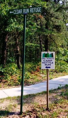 Sign 8 - Signs for Cedar Run Wildlife Refuge and Camp Kettle Run, at the corner of Hopewell Road and Centennial Drive