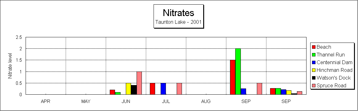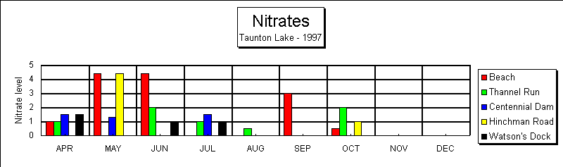 Nitrates: Like phosphates, nitrates (compounds containing nitrogen) are also a source of nutrients for unwanted aquatic weeds and algae, and enter the water in runoff from fertilized lawns and fields, paved areas, and seepage from septic tanks.