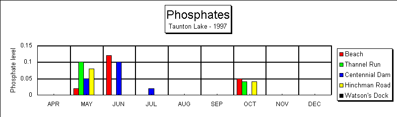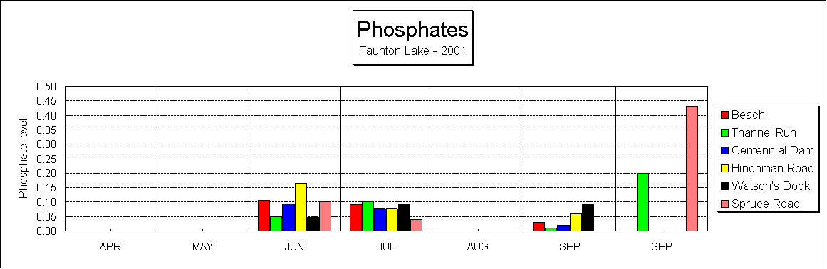 Phosphates: Maximum desirable level is 0.1. Phosphates (compounds containing phosphorus) act as a plant nutrient (fertilizer), promoting growth of unwanted aquatic weeds and algae. The weeds and algae rob the water of oxygen, suffocating fish and other aquatic life. Phosphates enter the water in runoff from fertilized lawns and fields, paved areas, and seepage from septic tanks. Phosphates are the key nutrient causing 90% of the overabundance of weeds and algae in waters around the world. One pound of phosphorus can result in over 10,000 pounds of wet weeds and algae.